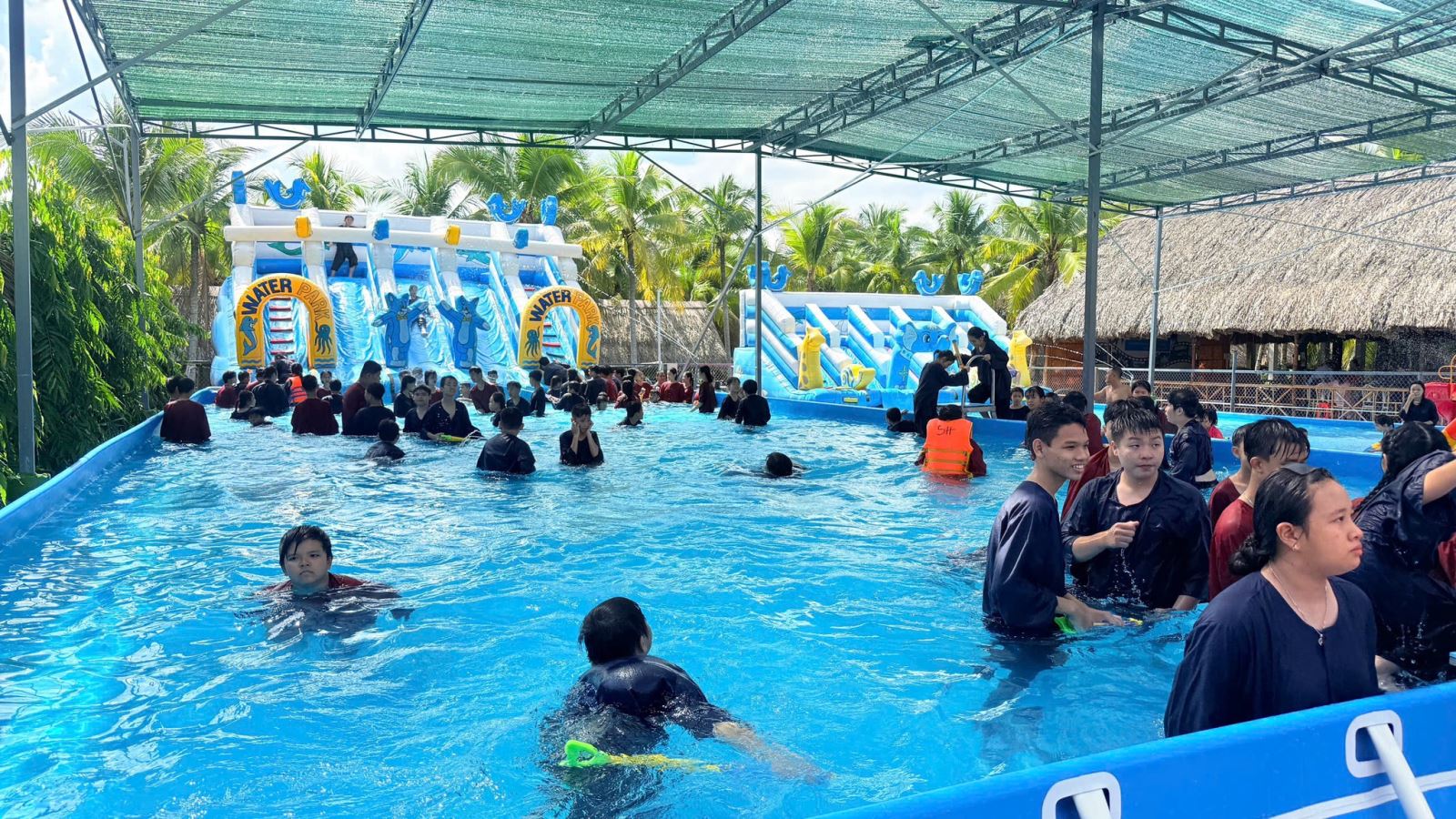 Đến làng du lịch Sen Hồng, không khí trở nên rộn ràng và tràn đầy tiếng cười khicác bạn học sinh đến tham quan, vui chơi và trải nghiệm thực tế ngoài trời