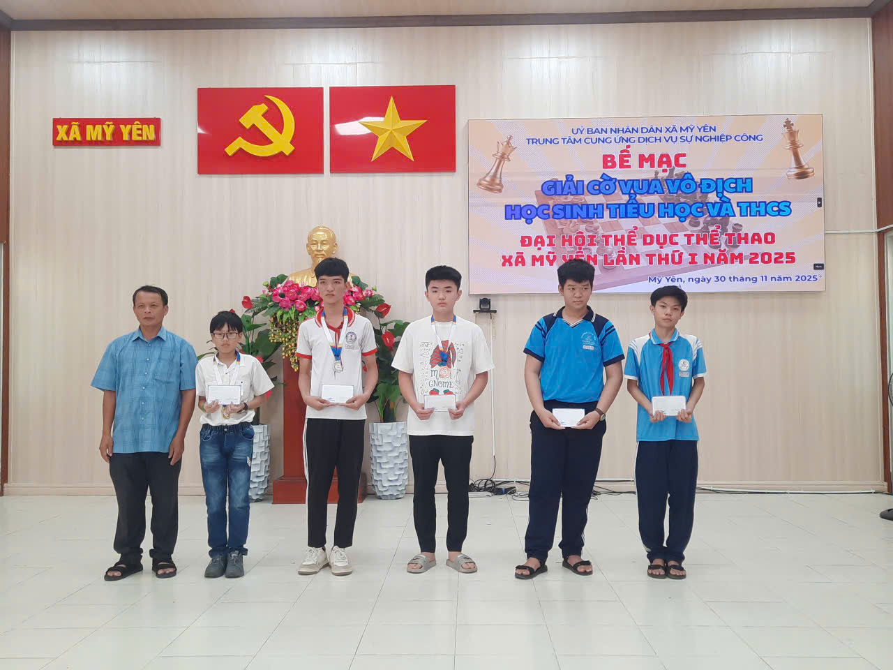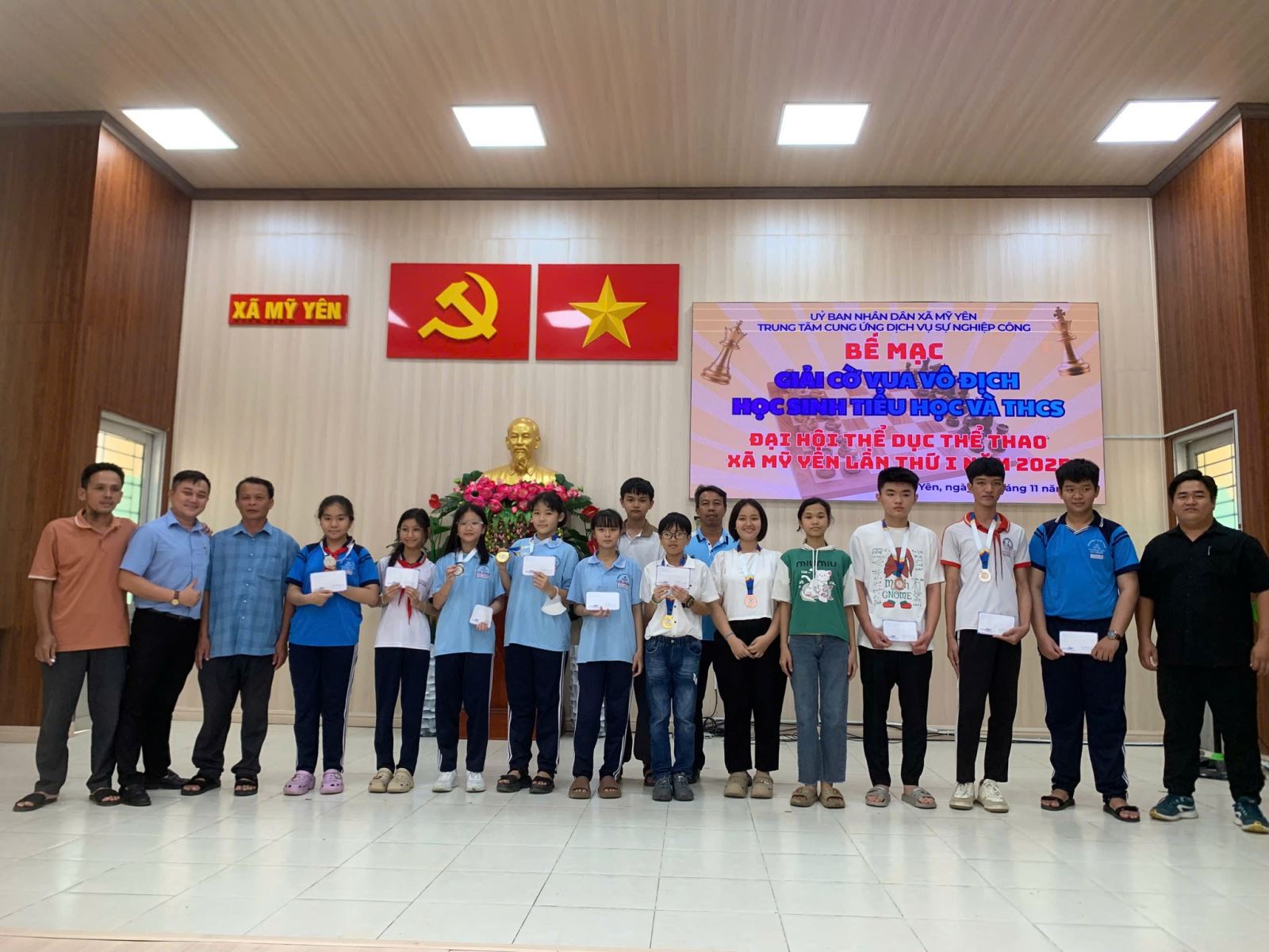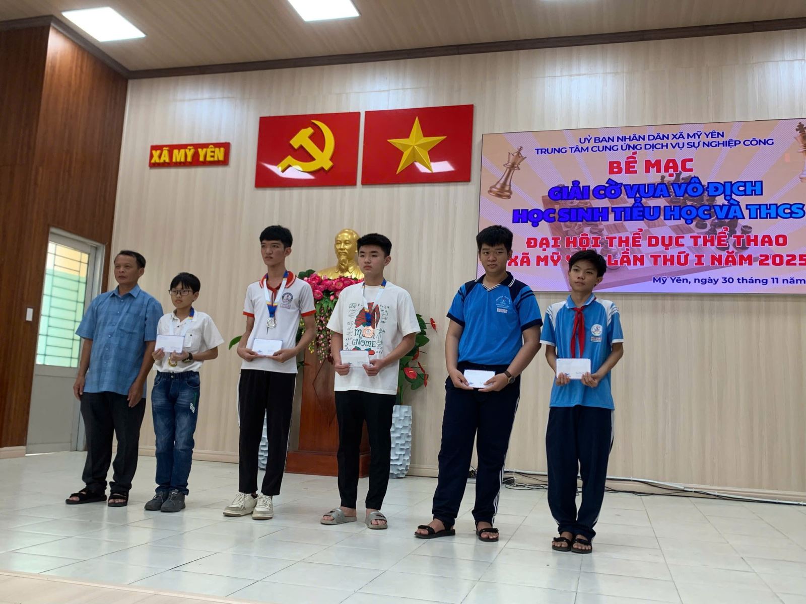 Ngày 30/11/2025, tại xã Mỹ Yên, hội thi Cờ vua cấp xã năm học 2025–2026 đã được tổ chức với sự tham gia của đông đảo học sinh đến từ các trường THCS trên địa bàn xã Mỹ Yên. Đây là hoạt động nhằm tạo sân chơi trí tuệ lành mạnh, giúp học sinh rèn luyện tư duy logic, khả năng phán đoán và tác phong thi đấu khoa học.
